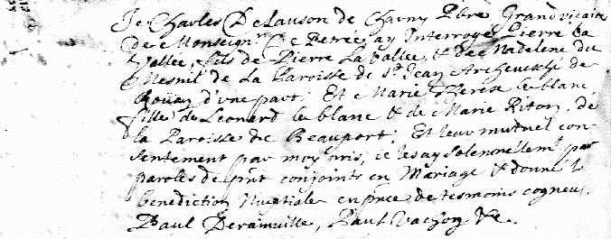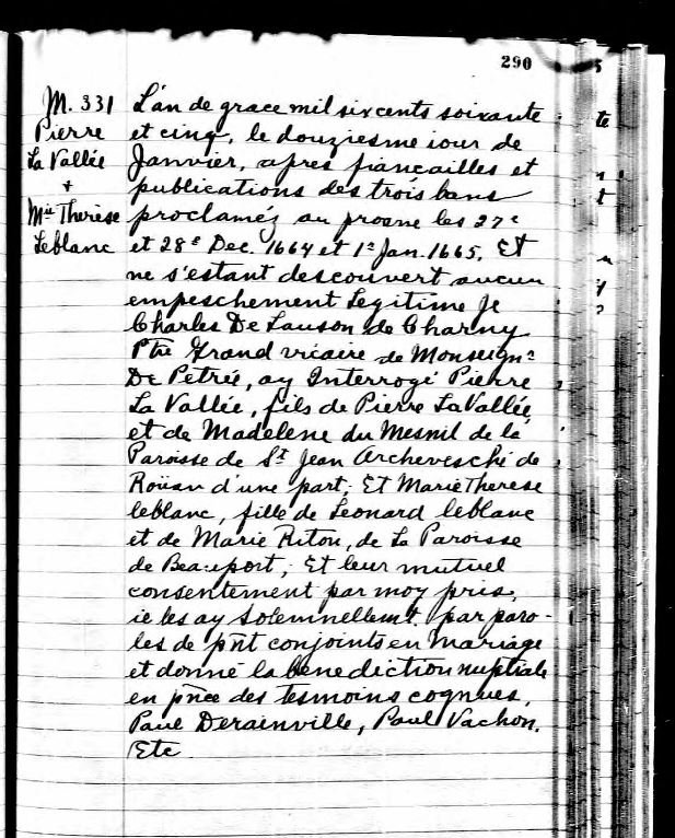 L'information citée provient deun manuscrit publié par Paroisse Notre-Dame de Québecà Québecle 12 janvier 1665, conservé à Paroisse Notre-Dame de Québec. (Réf: p. 151, 1665, janvier).