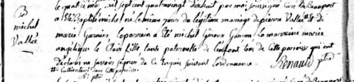 L'information citée provient deun manuscrit publié par Paroisse Notre-Dame de Beauport, Qcà Beauport, Qcle 4 mai 1798, conservé à Paroisse Notre-Dame de Beauport, Qc. (Réf: 1798 B). L'auteur/concepteur était Renaud, ptre, curé. Cette citation est considérée comme étant une évidence directe, formelle et non-discutable.