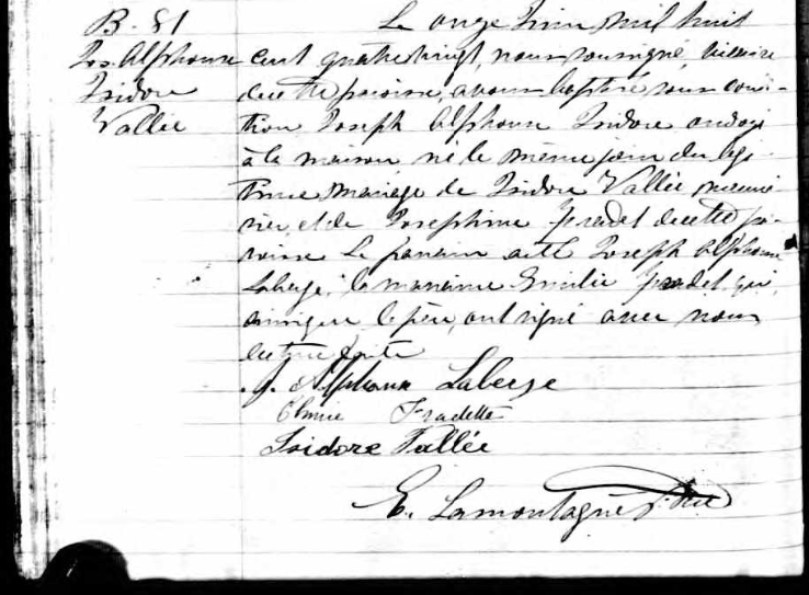 L'information citée provient deun manuscrit publié par Paroisse Notre-Dame de Beauport, Qcà Beauport, Qcle 11 juin 1880, conservé à Paroisse Notre-Dame de Beauport, Qc. (Réf: 1880 B-81). L'auteur/concepteur était E. Lamontagne, ptre. Cette citation est considérée comme étant une évidence directe, formelle et non-discutable.