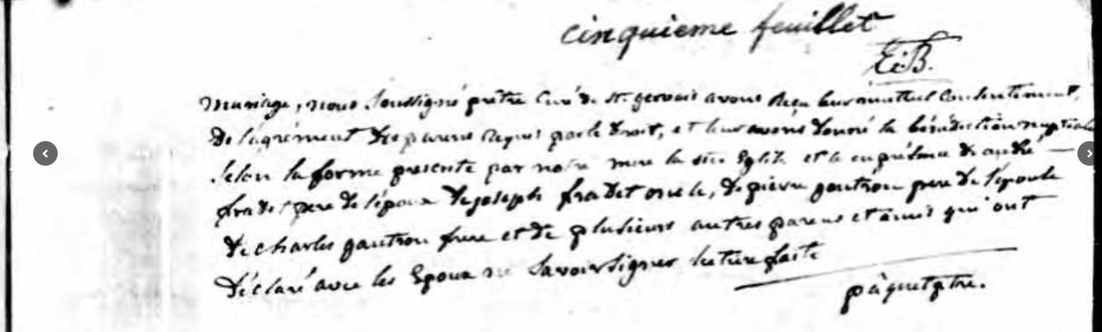 Paroisse St-Gervais, Co Bellechasse Qc. (Réf: 1818 8M de, quatrième feuillet verso).